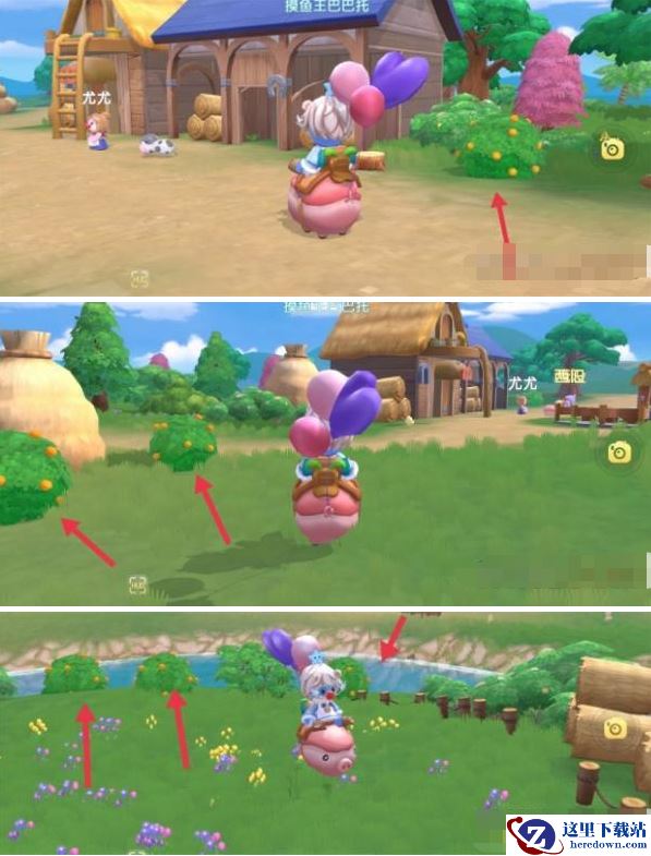 进场景的左边有橙色浆果右边的楼梯有红色浆果→往右边走的地方分布着2个橙色浆果和1个红色浆果→往回走过独木桥分别有1个红色浆果和橙色浆果→最后往右边走分布着3个红色浆果