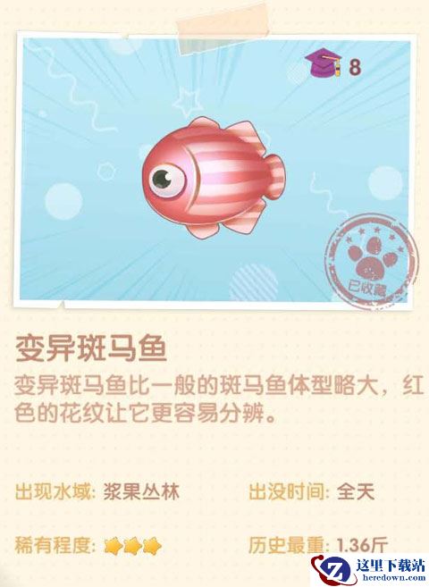 以上就是小编整理的关于《摩尔庄园手游》变异斑马鱼图鉴一览的全部内容,更多游戏攻略请持续关注手游网!
