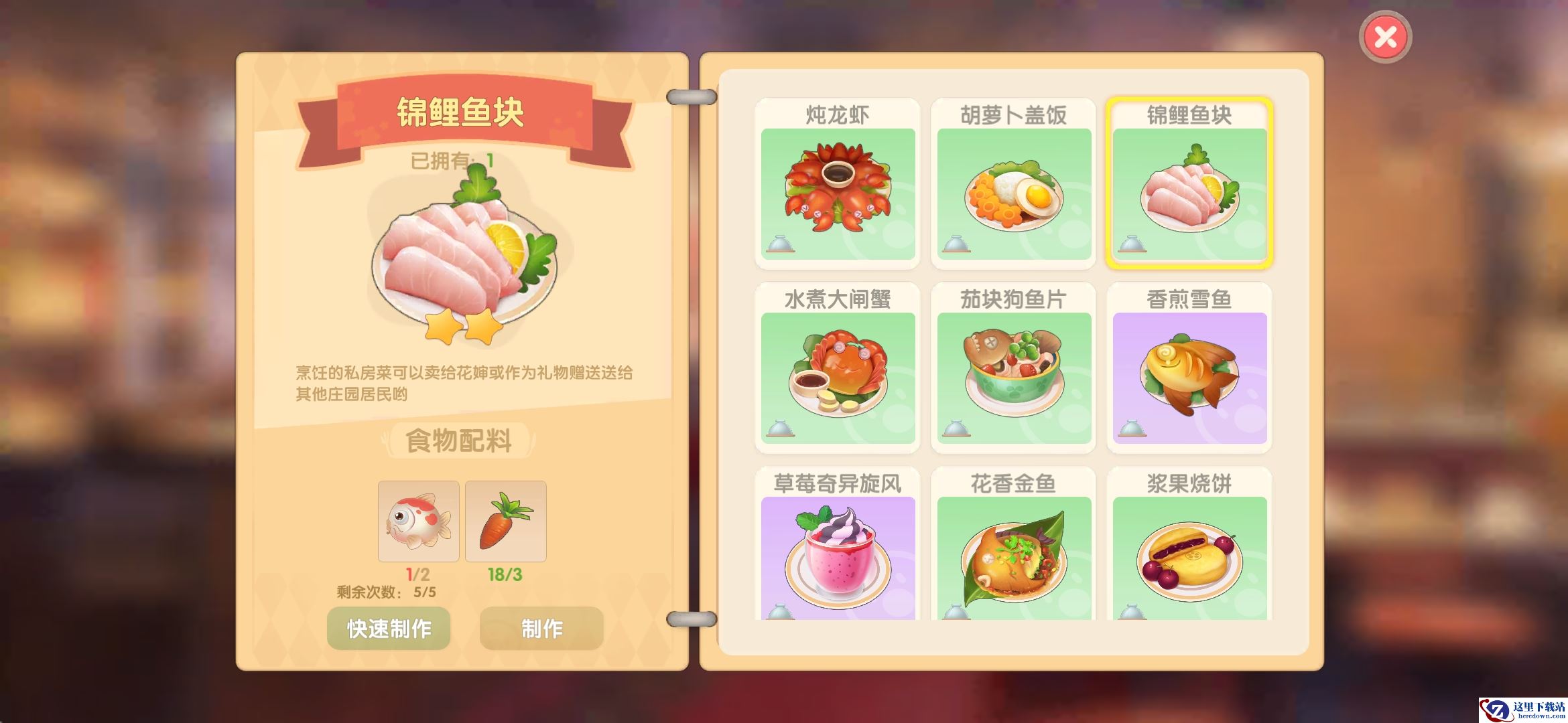 锦鲤鱼块是游戏中比较常见的食谱
