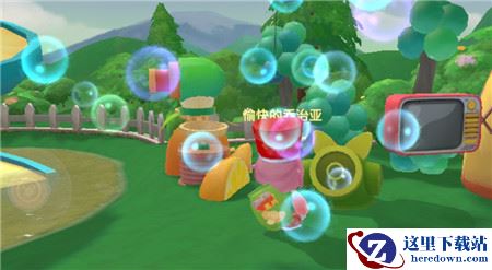 派对广场就是NPC琦琦的所在地,里面充满了各种各样的小彩蛋。比如触摸这个绿色的泡泡机,机会持续五秒吹出泡泡。广场中的小木马、摇摇车、大西瓜都可以触发小彩蛋哦!