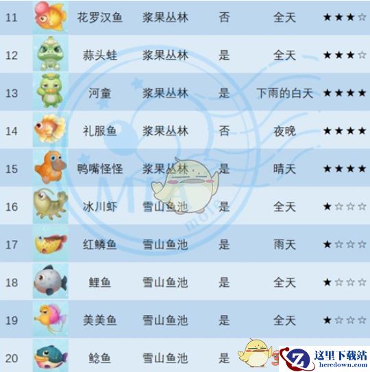 以上就是《摩尔庄园手游》全鱼类刷新位置表一览的全部内容了,更多游戏攻略请持续关注手游网!