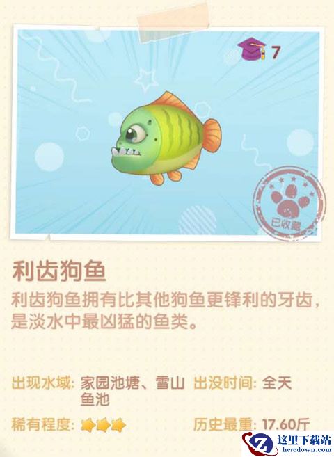 以上就是小编整理的关于《摩尔庄园手游》利齿狗鱼图鉴一览的全部内容,更多游戏攻略请持续关注手游网!