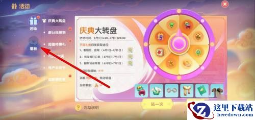 2、进入活动页面,点击左侧的福利;