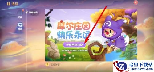 3、进入神奇密码页面,点击中间的神秘密码兑换;