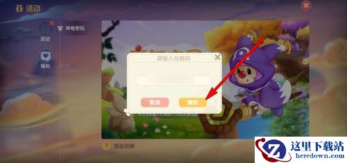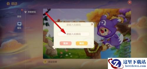 4、弹出兑换码输入框,输入兑换码;