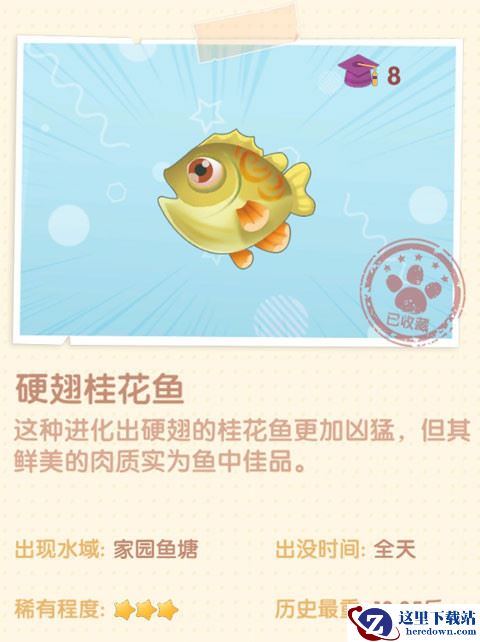 以上就是小编整理的关于《摩尔庄园手游》硬翅桂花鱼图鉴一览的全部内容,更多游戏攻略请持续关注手游网!