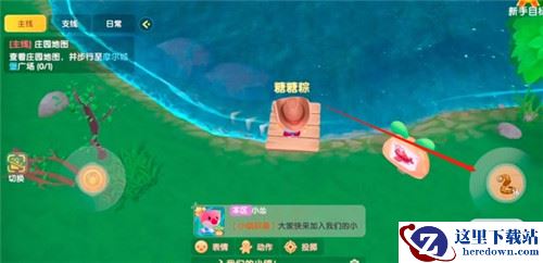1、点击池塘旁边的木牌查看钓鱼点,选择一个位置钓鱼;