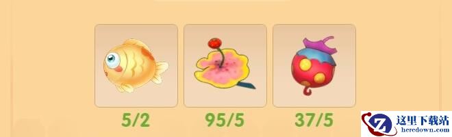 食谱配方:金鱼*2、毛毛花*5、奇异果*5