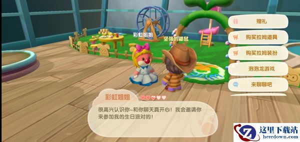 1、彩虹姐姐是一家宠物店的店长,去店里可以买到拉姆的衣服和道具,还可以玩泡泡龙游戏。