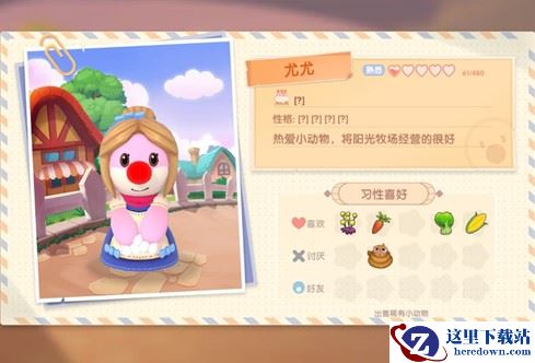 尤尤从小在乡间长大,热爱小动物,懂事后就开始经营阳光牧场了;在阳光牧场摩尔们可以买到小动物幼崽,饲料及工具,有关畜牧业的问题都可以请教尤尤。