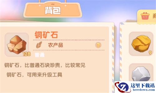 铜矿石是开采石块、铜石块、银石块和金石块时,概率获得的一种矿石。如图所示家园中的这种石块,用工具开采之后就有概率获得。