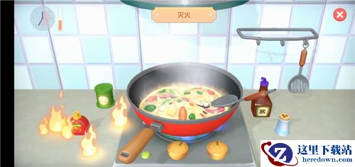 如果快速点的话,火苗很有可能就没有反应,只能说火苗的反馈器可能出BUG了,比较迟钝,点不灭就长按多点几次,总能触发灭火效果的。如果火没灭,时间还没了,就相当于烹饪失败。