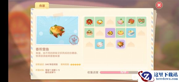 本菜品需要支线任务解锁(白熊处领取),如果没有接取做雪鱼的任务图鉴不会解锁(猜测)。这个配方没有用烤箱先研究,是接了任务之后直接图鉴解锁了,然后去窗口直接制作。