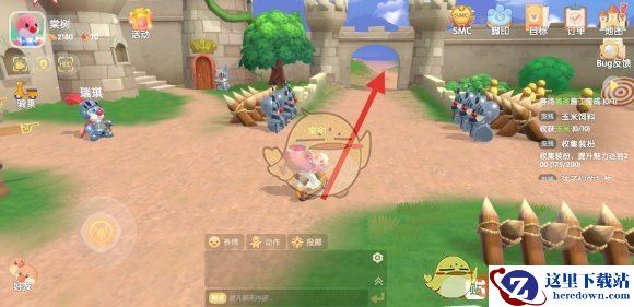 2、玩家一直前进会看见一个岔路口,在岔路口右转,然后直行前往开车车。