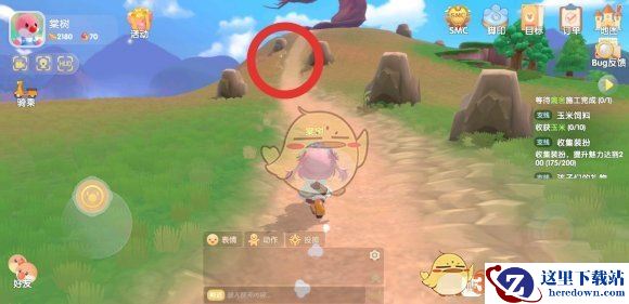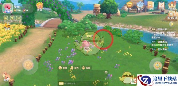5、玩家走到桥边停下,在右侧的草丛里有一个光圈。