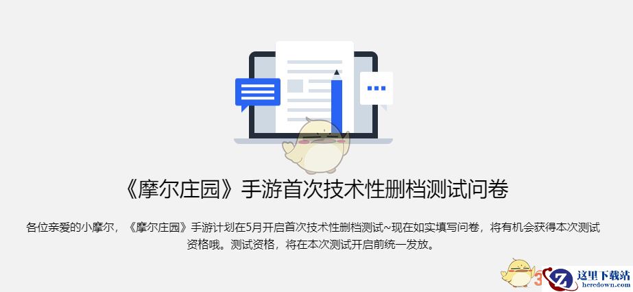 只要如实填写《摩尔庄园》手游本次测试的调研问卷,即有机会获得本次测试的资格。调研活动结束后,我们将在收到的问卷中筛选测试名额,并在测试开启前统一发送测试资格。