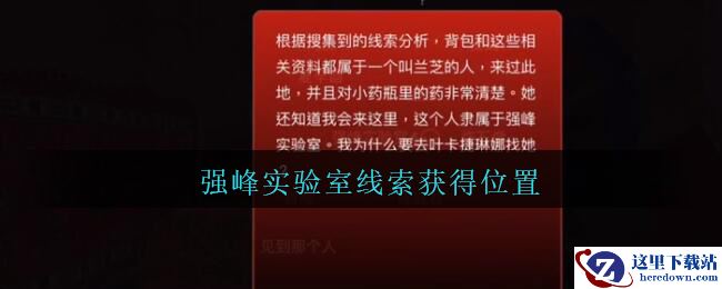 以上就是小编整理带来的《孙美琪疑案:陈庭君》攻略强峰实验室线索获得位置分享,更多精彩内容,请点击关注这里下载站,小编将持续为您更新!
