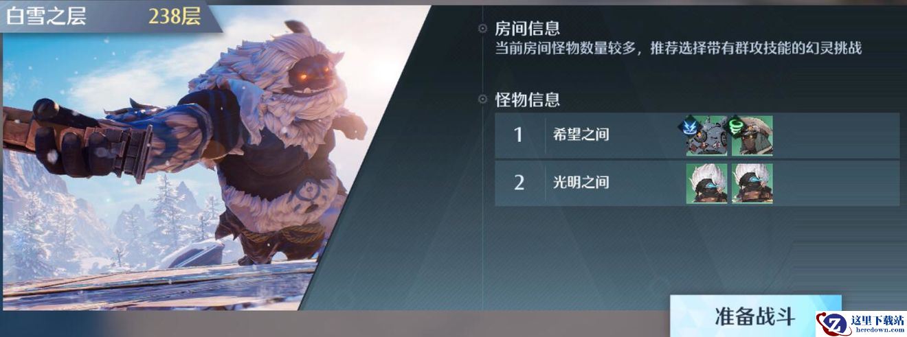 236层-239层怪物种类相似,第一层的怪物皆为雷霆种族,所以我推荐各位冒险家们一队附体烈焰种族的真田·幸子或者波洛·赫莎,最低星级为6星,武器等级建议20+级,如果烈焰种族的幻灵星级都不高的话,推荐依旧选择上文241层小怪的幻灵阵容:选择附体风暴种族的雅芙,雅芙的技能皆为AOE伤害,搭配上诺亚的聚怪效果,可造成大量伤害。