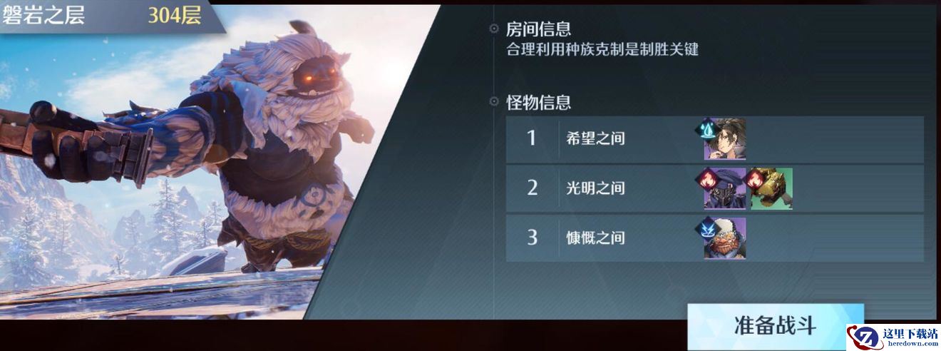 301层到304层中,这四层怪物种族相似,所以推荐三套幻灵阵容即可轻松通关这四关,第一层推荐附体雅芙·零,其余幻灵为诺亚·零,卡弥·史密斯和雪琳·福尔摩斯,主要选择依据为这一关的推荐评分为黄颜色(幻灵星级越高,提供全局增伤越高,推荐四个幻灵总星级在35星左右)。第二层推荐附体英格拉姆·柏拉图,其余幻灵佣兵为伽诺斯·欧几里德,夏莉·格兰杰和小影·玛蒂拉。这一套幻灵阵容中有三个紫色幻灵,有一个SSR,成型较容易,推荐总星级幻灵在40星左右,因为第一层和第二层怪物种族的关系,所以第二层比第一层的幻灵阵容增伤要高7%左右。第一层和第二层的幻灵评分在35W分左右。第三层推荐附体真田·幸子,其余幻灵佣兵为维克塔·雨果,乔妮·斯派罗和尤岚·阿希拉,主要选择幻灵的依据为烈焰种族,幻灵总评分在22W左右,星级在24星左右,全局增伤+30%。