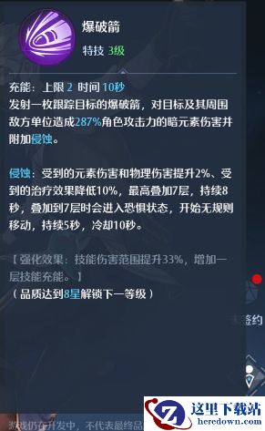解析:这是一个跟踪技能,但是还是别想用他来pvp了,洛朗本身伤害并不高,主要还是用来叠加侵蚀buff的。