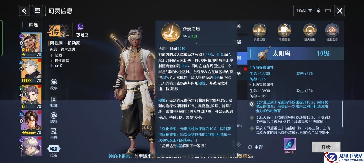 阿提因:一个高强度的暗坦,自带元素抗性,抗伤小能手,手持剑盾时蓄力可以增加壁垒值。(比较推荐爱玩阿提因的冒险家们将武器升至10级,可以获得【反伤】效果,有能力的冒险家们也可以提高至20级,可以做到3次攻击后石化敌人)