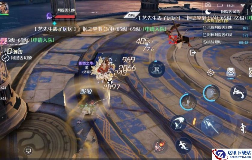解析:对战时,阿提因的幻灵幻象会使用觉醒技能【遮天蔽日】在脚下生成一圈沙土,对冒险家持续造成伤害,随后便会使用【甲盾重击】冲撞并击倒冒险家,连续地多次攻击都会对冒险家造成击退与减速效果。(阿提因幻象使用技能时,冒险家们可以通过【受身】弹起阿提因幻象,从而打断其技能的释放)