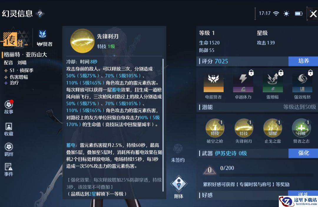 先锋利刃可以进行多段攻击并且能够快速叠加3层蓄电效果提升自身伤害的同时,也能使后续的“破空之枪”生成更高阶数的电子力场,攻击时会生成枪风,具有一定的AOE能力和治疗效果,功能性极强。配合能够为队友叠加“蓄电”效果的幻灵时,格丽特几乎每一次释放先锋利刃都可以实现5层蓄电,召唤电场进行攻击。