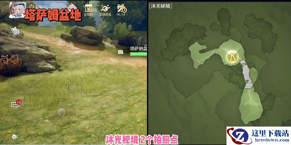 3、沐光秘境风景点位置如上图所示,大家按照游戏宝小编提供的标记点就能轻松找到了哦。