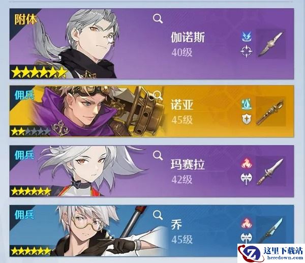 其中【伽诺斯】26000+幻灵评分,2200幻灵攻击力;【诺亚】18000+幻灵评分,1800+幻灵攻击力,【乔】和【玛赛拉】都是25000+幻灵评分,1700+幻灵攻击力。