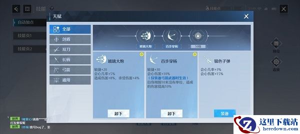 武器推荐:弓箭或双刀,双刀技能天赋同样选择前2种。
