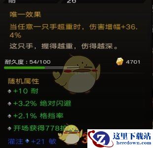 装备底下会出现随机属性,如生命增强,护甲增强等。