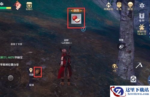3、按照上图的标记位置就可以找到苹果进行收集了,还是挺方便的,希望可以帮到大家。
