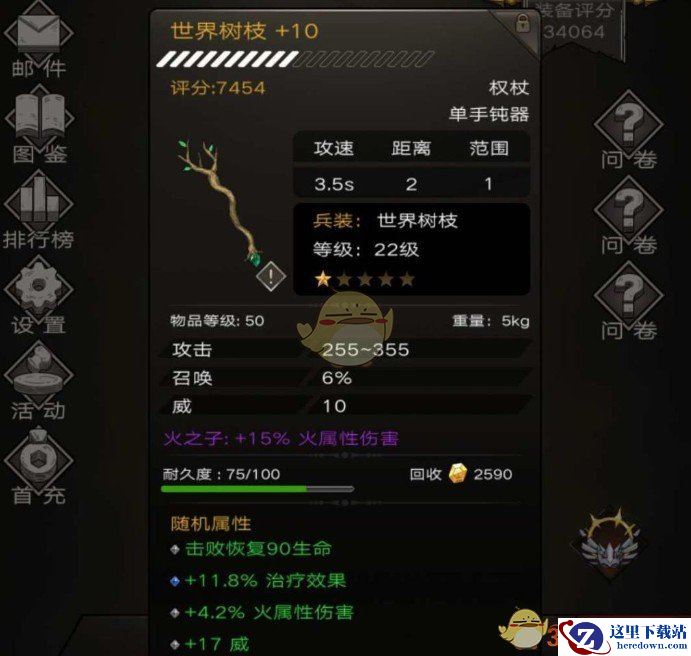 1、世界树枝,可以给武器附加回血效果,伤害一般