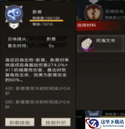 升阶后,技能的能力会获得大幅度提升,以”影兽”技能为例,升阶,"影兽” 的普通攻击冷却时间就会减少0.6秒。因此当你想提升实力时,升阶技能是个很不错的方法。