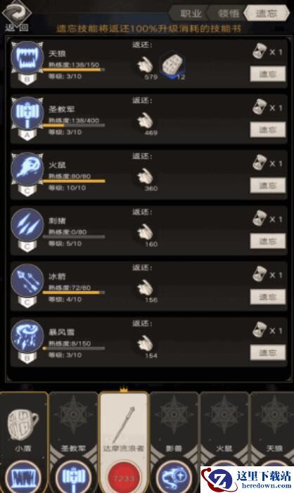 由于技能繁多,很容易就会出现升级错技能的情况,别担心,在"遗忘”界面,使用“时间沙漏”既可遗忘技能,成功遗忘后便会得到返还的技能卷轴和死海文书,玩家们一定要利用好这个功能。需要注意“时间沙漏"是个较为馈的道具,因此遗忘有风险~使用需谨慎。