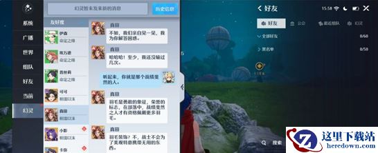 当我们打开幻灵频道的时候,就可以看到我们拥有的幻灵给我们挨个发了信息,这个幻灵的信息排列也是根据好感度来排列的。