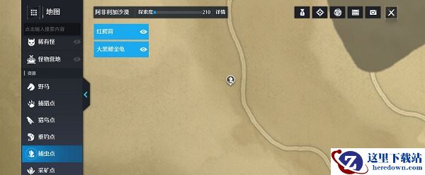 1.昆虫的捕捉需要我们使用工具捕网,那么那些地方有昆虫呢?第一个最简单的方式就是,我们点开右上角的地图,再点开左边的捕虫点,就可以锁定我们想要找到的各种昆虫进行捕捉。