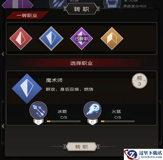 1、属性流就是利用各种属性攻击,来伤害敌人的一种流派。一转时选择『魔术师』,便可以凭借[冰箭]和[火鼠]两种技能来对敌方造成属性伤害了。