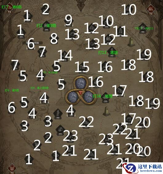 图片从1开始观看,基本上按序号前进,中途会适当打一些其他的点,堵上部分路口,让T+1能够沿着自己设想的路线走。