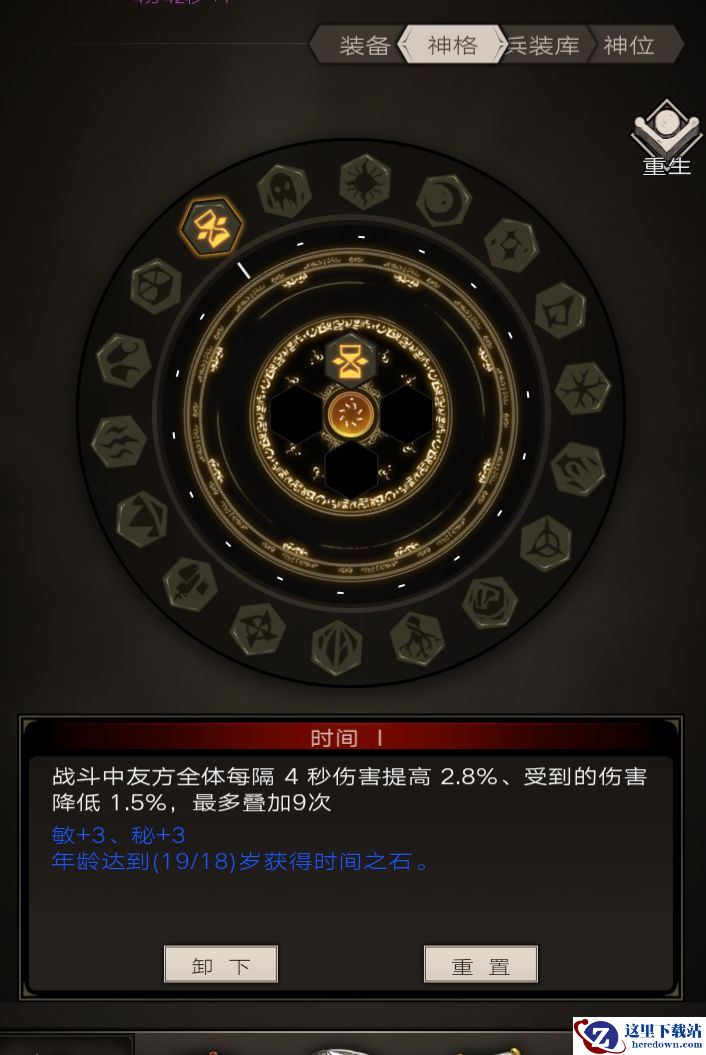 第一次重生以后选的神格选择属性增强最高的神格就行,这种是算通用神格不要选流派向的前期流派提升非常少。