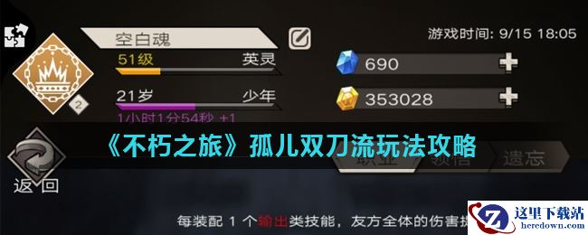 以上就是小编整理的关于《不朽之旅》孤儿双刀流玩法攻略的全部内容,更多游戏攻略请持续关注这里下载站!