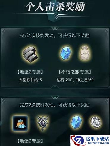 个人奖励分两档,发动一张技能卡可解锁第一档,两张技能卡均发动可解锁第二档。可通过使用同一账号激活两款游戏的方式集齐两张技能卡。