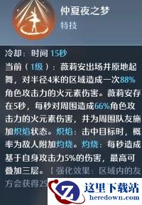 阵容核心:薇莉安技能(仲夏夜之梦)、尤岚技能(红色玫瑰)、乔妮技能(至高美学)均附带灼烧效果最高三层打出爆炸持续伤害完美combo。