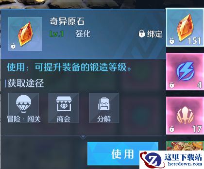 而强化石是前期需求量极多的物品。强化来源可以通过副本、商会购买、分解无用装备来获取。