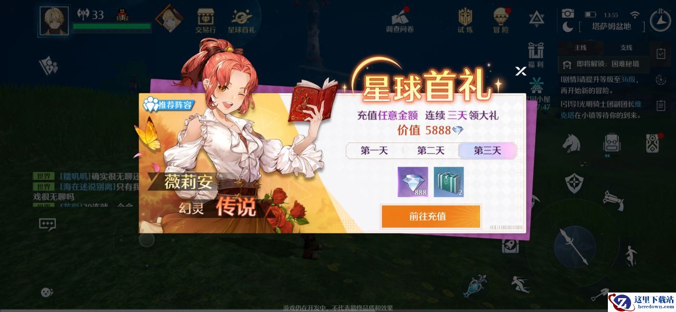 第三天的奖励为:888钻石+2个提升伙伴好感度道具