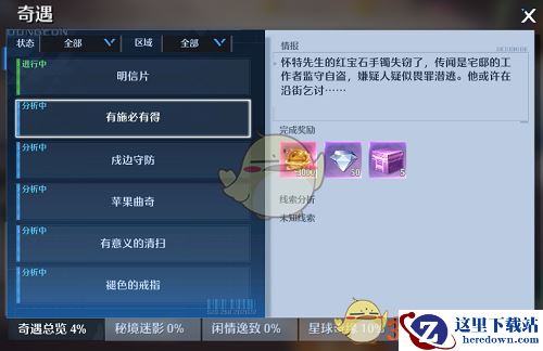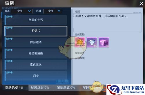 2、如上图所示,根据【明信片】这个奇遇给大家做一个案例:奇遇:明信片。