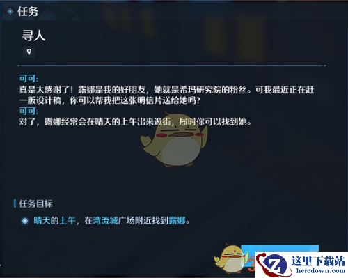 5、拍摄完毕后交给可可,触发二段任务:寻人。