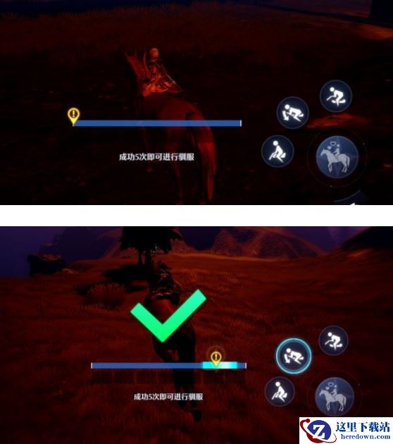 在套马以后要经历5个训马阶段,成功以后才能捕获野马,只要大家小心点不要按错技能,基本十拿九稳。
