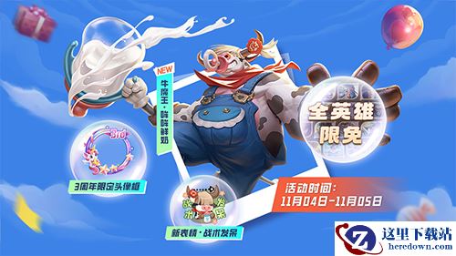 1、周年献礼:11月4日-11月5日,游戏内的所有英雄都可以免费体验,并且还可以获得牛魔史诗皮肤、头像框、表情等奖励。