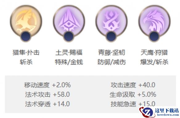 猎隼·扑击、土灵·赐福、青藤·坚韧、天鹰·狩猎